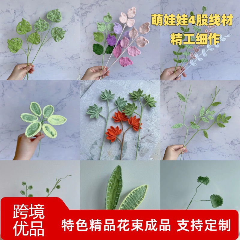 ユーカリの葉の完成品の手編みのシミュレーションの花は手作りの花のdiy毛糸を編んで自作のかぎ針の花束を編みます。