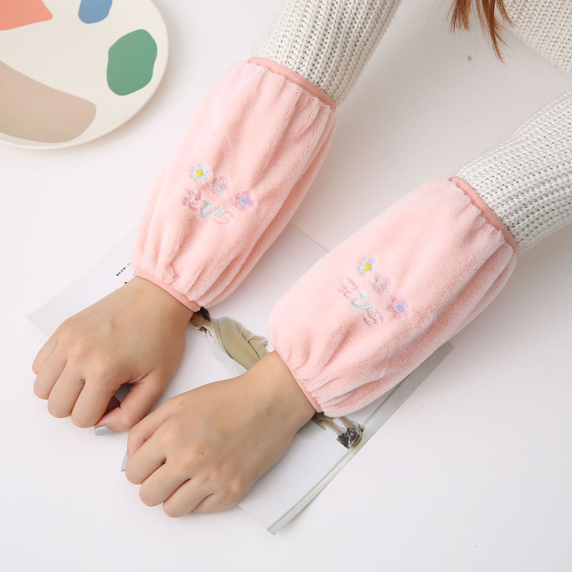 秋の冬の長い袖カバー女性の超柔らかいアニメ刺繍防汚保温学生カバー袖保護袖頭筒