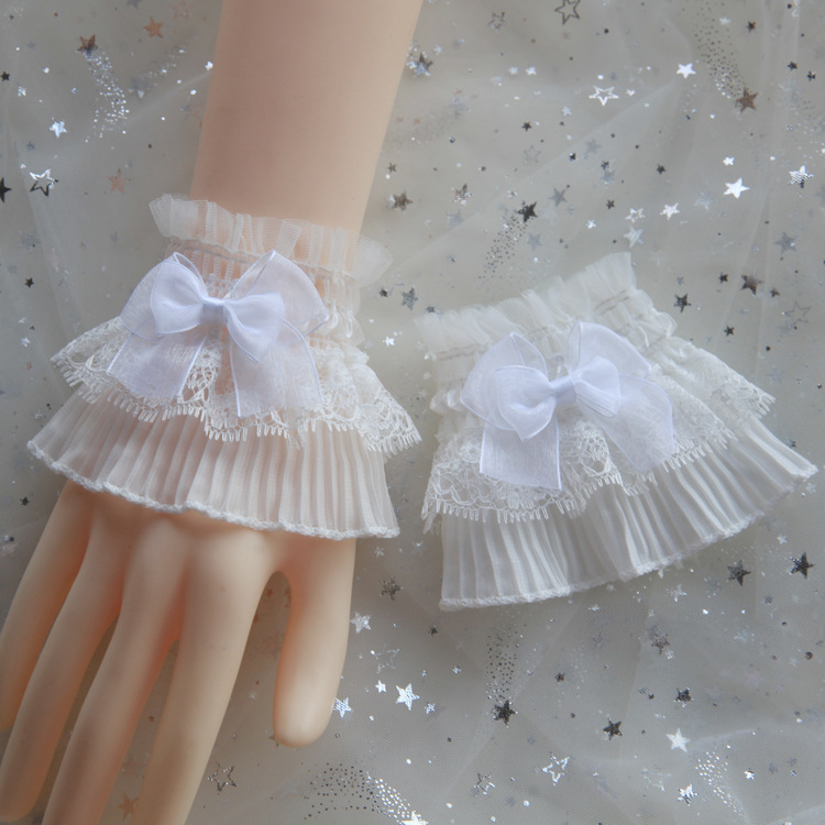 Jk甘い袖カバーかわいいアンドロメダ手首カバー偽袖口ロリータ蝶ネクタイレース百タック偽袖装飾