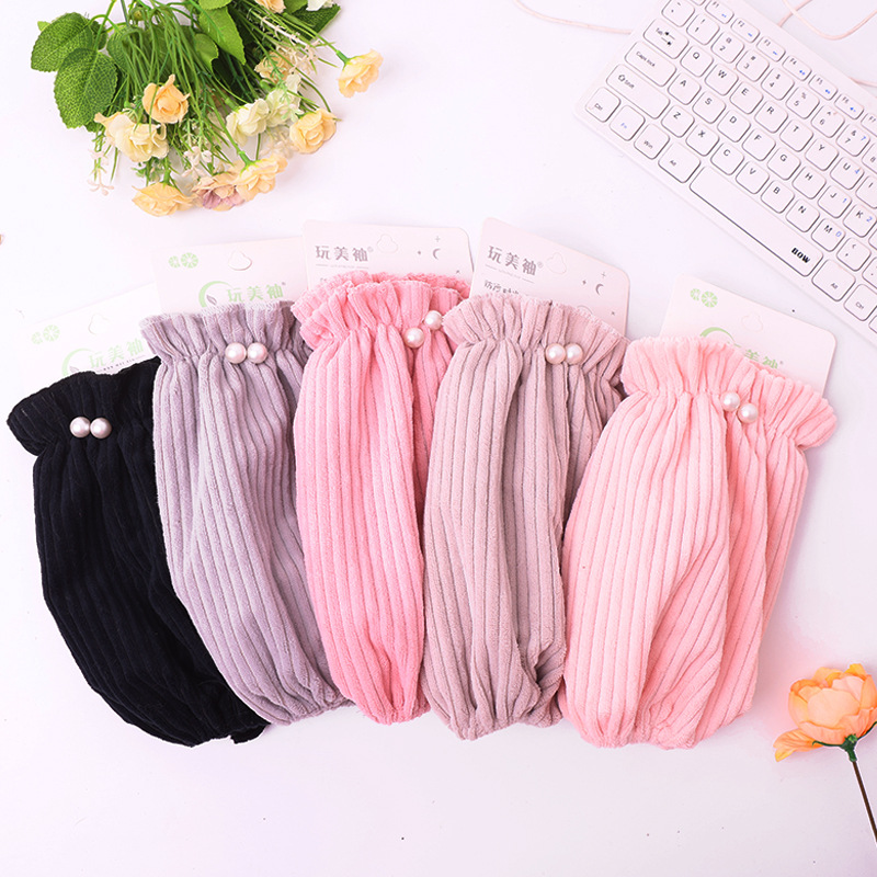 秋冬純色パイル真珠袖カバーオフィス家事汚れ防止カバー袖ダウンジャケット綿袖防汚カバー袖