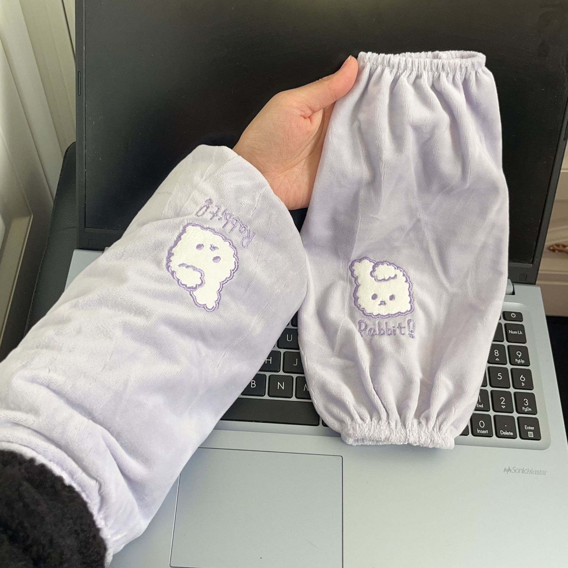 新しい長袖のウサギ柄冬用防汚袖カバー、キッチン、家事、仕事、通学用ベルベット袖カバー、学生用袖カバー、ハンドカバー
