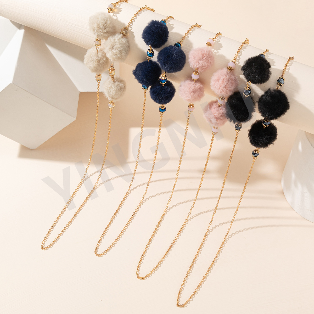 秋冬メガネアクセサリー韓国可愛い毛玉チェーンメガネ紐クロスボーダーファッションメガネチェーンネックレスメーカー