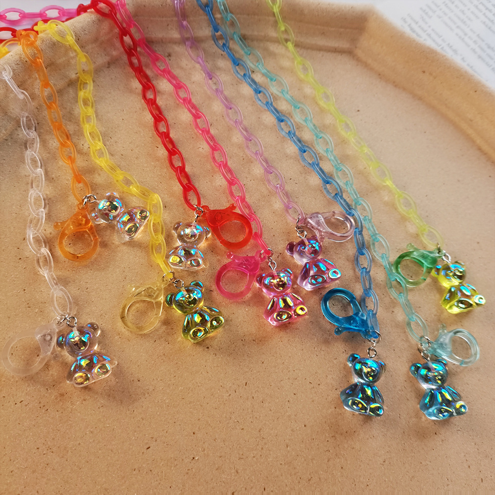 欧米では新型キャンディー色のアクリル熊の多色プラスチックが流行しています。メガネチェーンのカップルはマスクチェーンを多く使っています。
