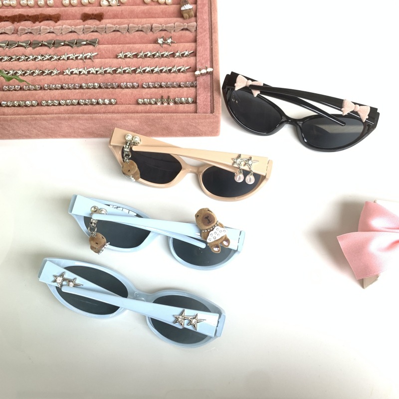 新しいサングラスのサングラスは鏡の足の部品の蝶結びの愛の真珠の星の熊を飾ることができます。