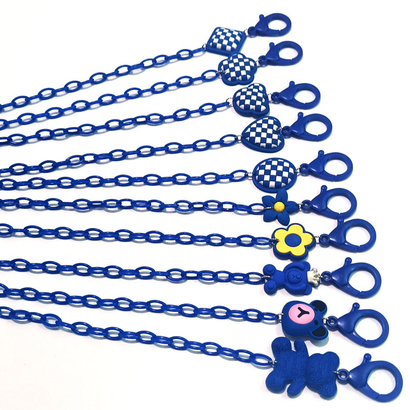 新型pvcソフトクライン藍愛花星棋盤格熊マスクチェーンメガネチェーンアクセサリー