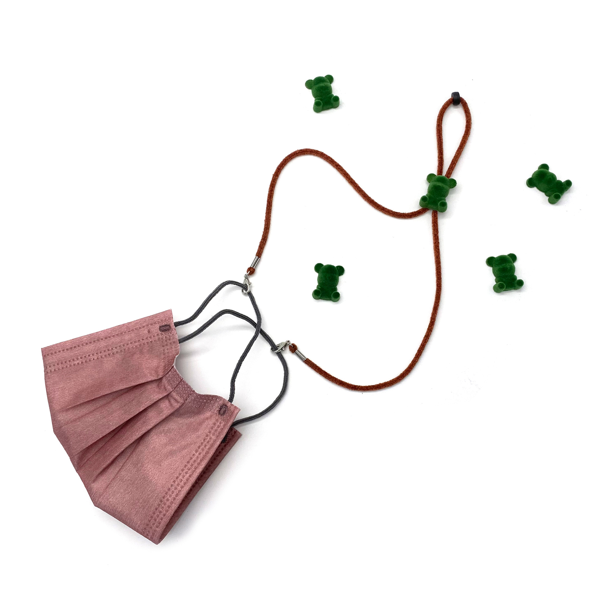 国境を越えたかわいいベアーの子供マスクは、メガネチェーンをなくしないように練習しています