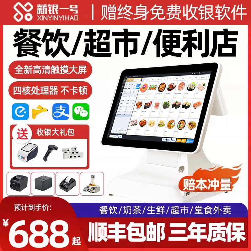 Xinyin レジ コンピューター Android レジ システム管理オールインワン シングルおよびダブル スクリーン スーパー マーケット コンビニエンス ストア フルーツ フレッシュ