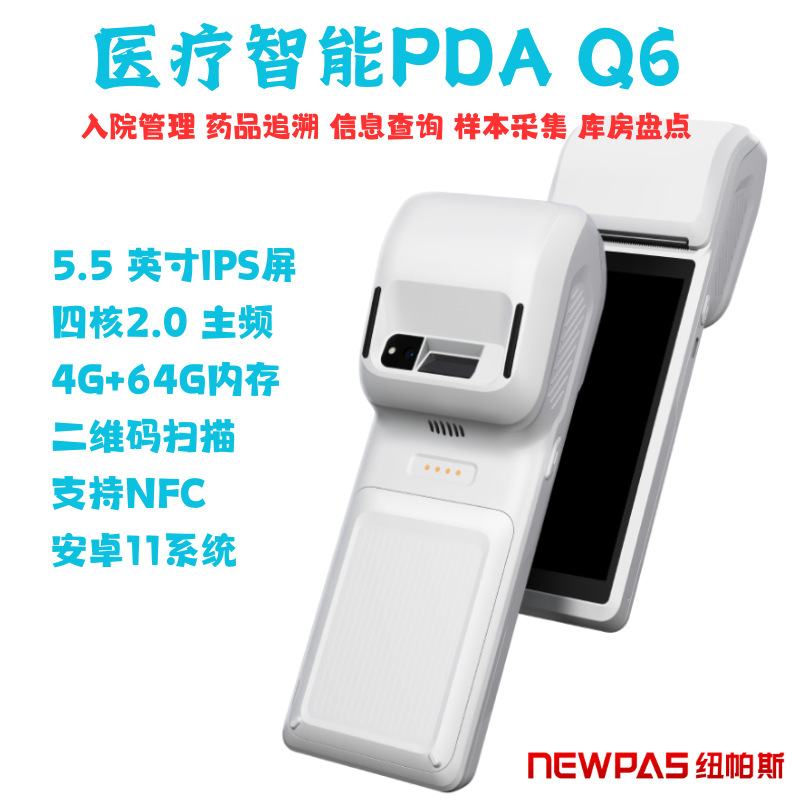 ニューパスq6医療知能pda内蔵サーマルプリンタ4g + 64g大メモリnfc二次元スキャンコードに対応