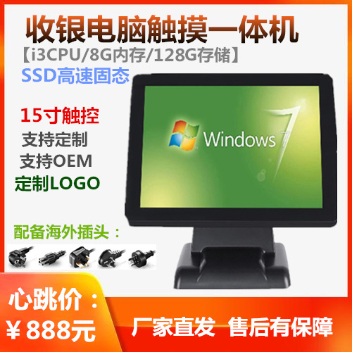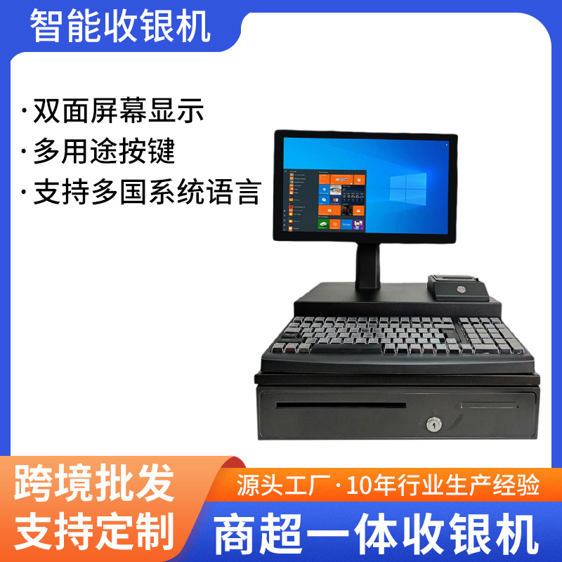 15インチ大画面スーパー飲食ミルクティー焙煎店シングル双画面レジコンビニタッチパネルレジ一体型