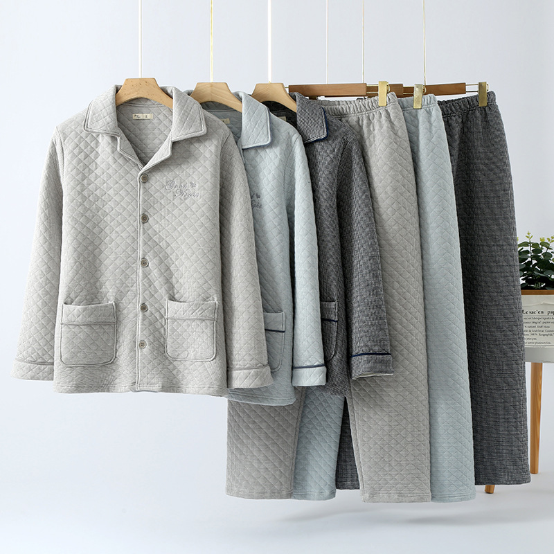 高級感パジャマ男性春秋綿長袖カーディガンシンプル青年家庭服セット秋冬可外着