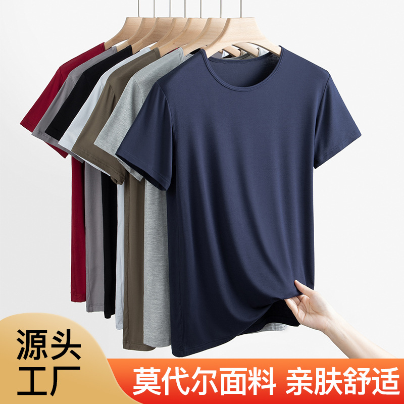 夏カジュアル Tシャツモーダルメンズ Tシャツ無地ラウンドネック半袖ルーズ大きいサイズ男性底シャツドロップシッピング