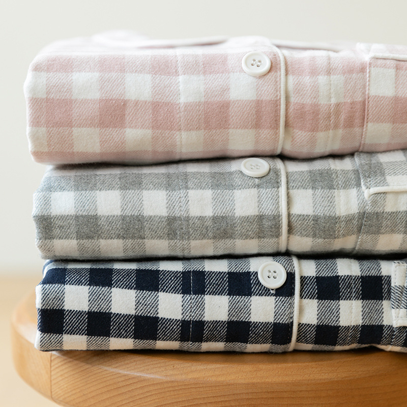 ちょうど69-カップルパジャマ女性春秋綿の綿毛綿布は日系風格子の家庭服を着ることができる
