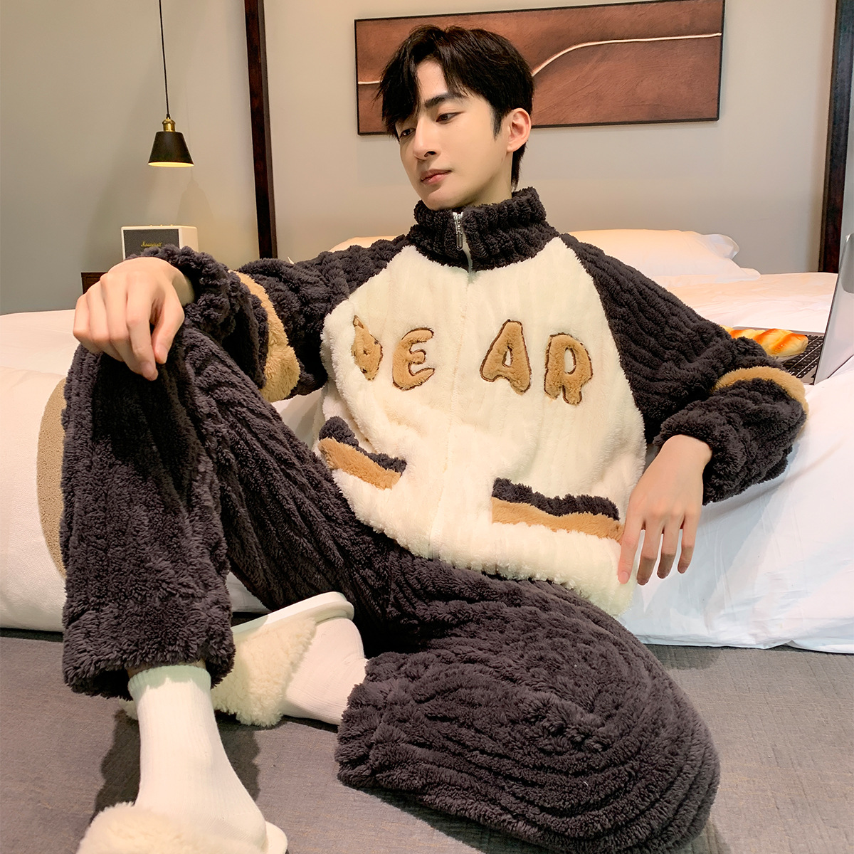 男性パジャマとベルベットの新しいサイズの保温家服セット秋冬