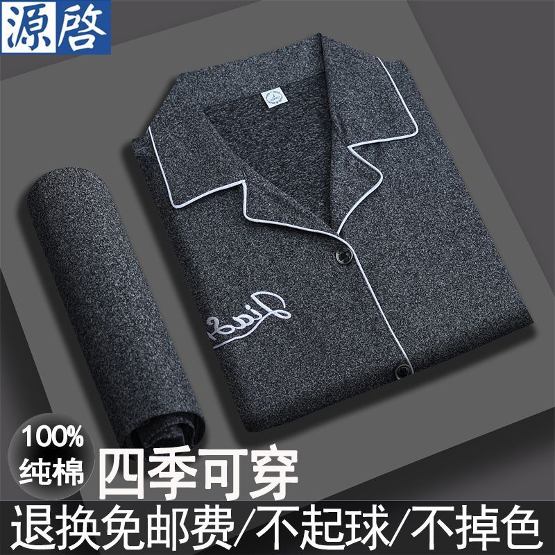 両面純綿パジャマ男性春秋長袖長ズボン中青年は家庭服セットを着ることができる