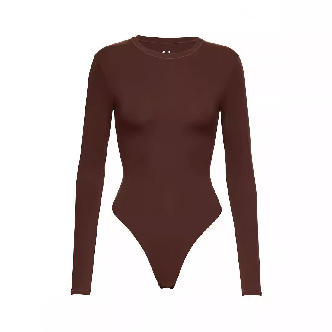 现货 SK**卡戴珊jennie同款长袖连体t恤女打底衫内搭纯色显瘦上衣
