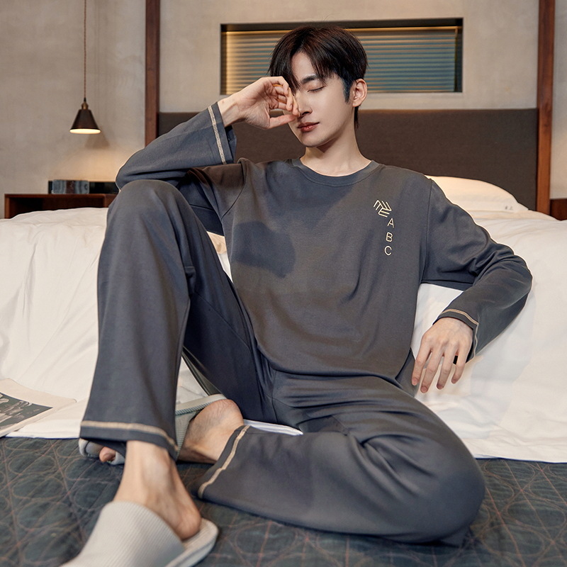 パジャマ男性長袖綿質春秋タイプのシンプルなカバーカジュアル男性青年冬の家庭服セットは外着ができます。