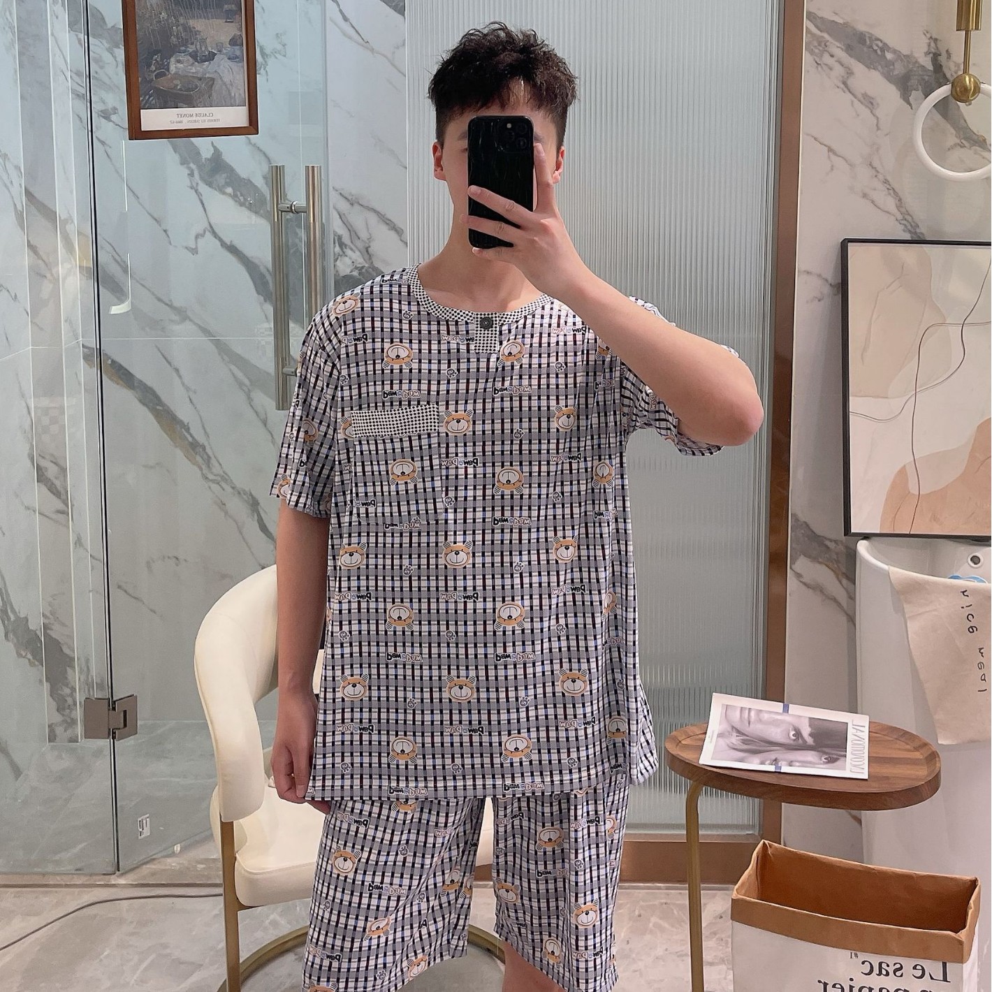 パジャマ男の夏の薄いタイプの氷の半袖の青少年は男性の2025の新型の部屋の服のスーツを着ることができます。