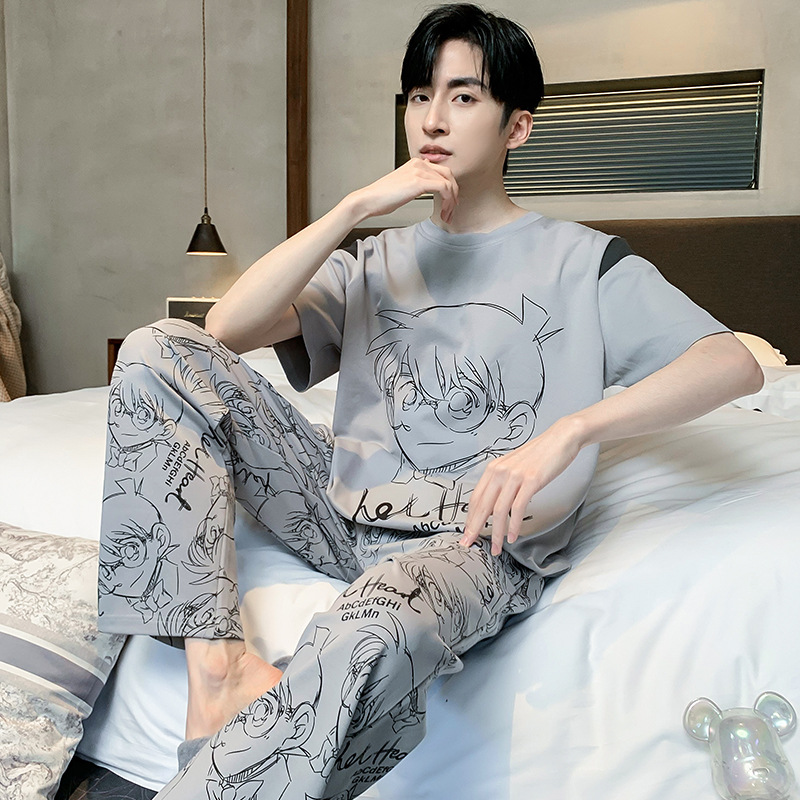 パジャマ男性 2025 新しい夏の純粋な綿半袖ズボン薄い秋大きいサイズ漫画ホームウェアセット
