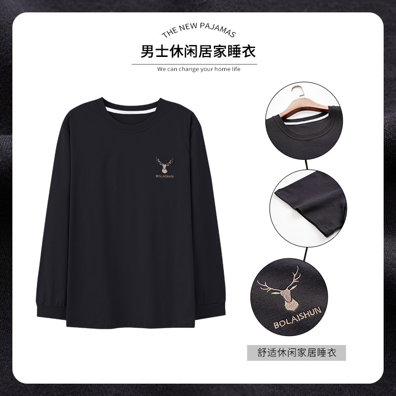 純綿パジャマメンズ春秋長袖ホームトップスTシャツカジュアルスウェットシャツルーズウェアラブル無地スポーツシングル服
