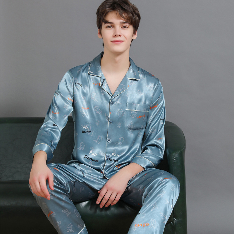 2023メーカー直販春秋男長袖長ズボンシルクパジャマセット夏快適シルク薄手ホームウェア