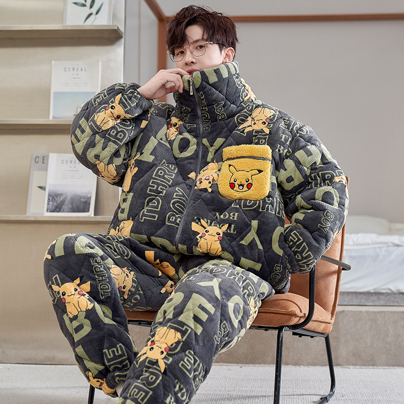 パジャマ男性コーラルベルベット冬ベルベット厚手保温高校学生青少年フランネル家庭服少年