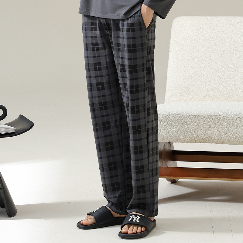新しい秋冬の両面モーダルメンズパジャマとパジャマパンツセット、長袖パンツ、ホームウェア、通気性があり肌に優しい。