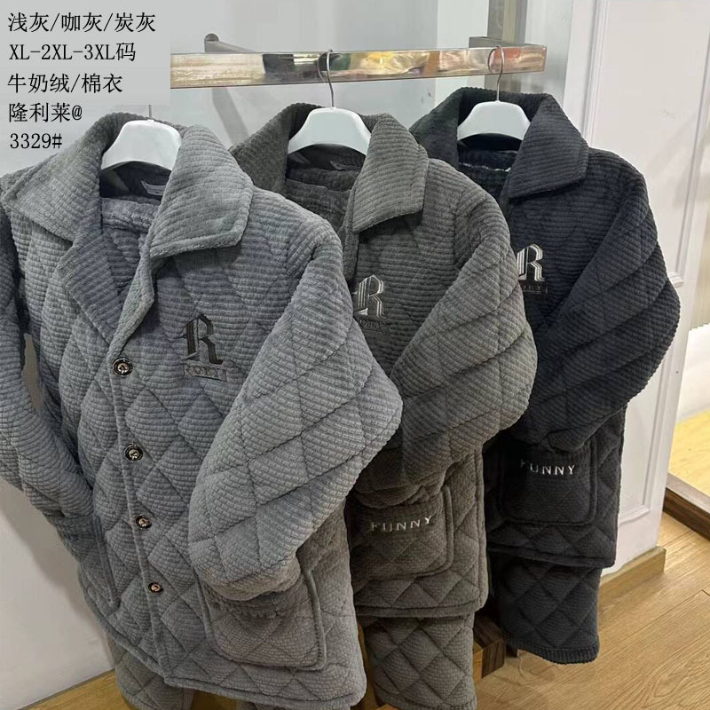 隆利莱牛乳絨毛男型綿服2025新型ファッション保温男は綿を挟んで男性の家庭服を厚くして流通している