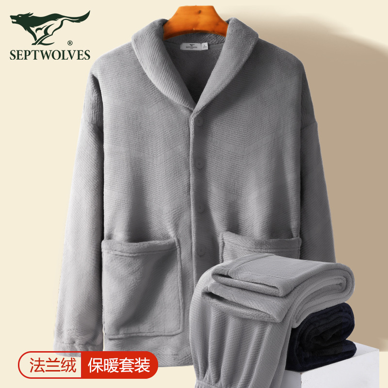 七匹狼男性フランネル家庭服セット冬の保温とベルベットレジャー家庭散歩はスーツを着ることができる