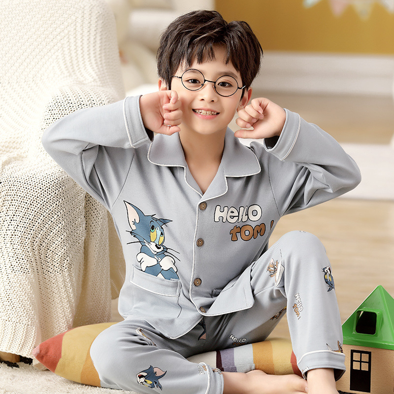 パジャマ男春秋長袖純綿アニメ青少年クレヨンしんちゃん秋中学校学生家庭服セット