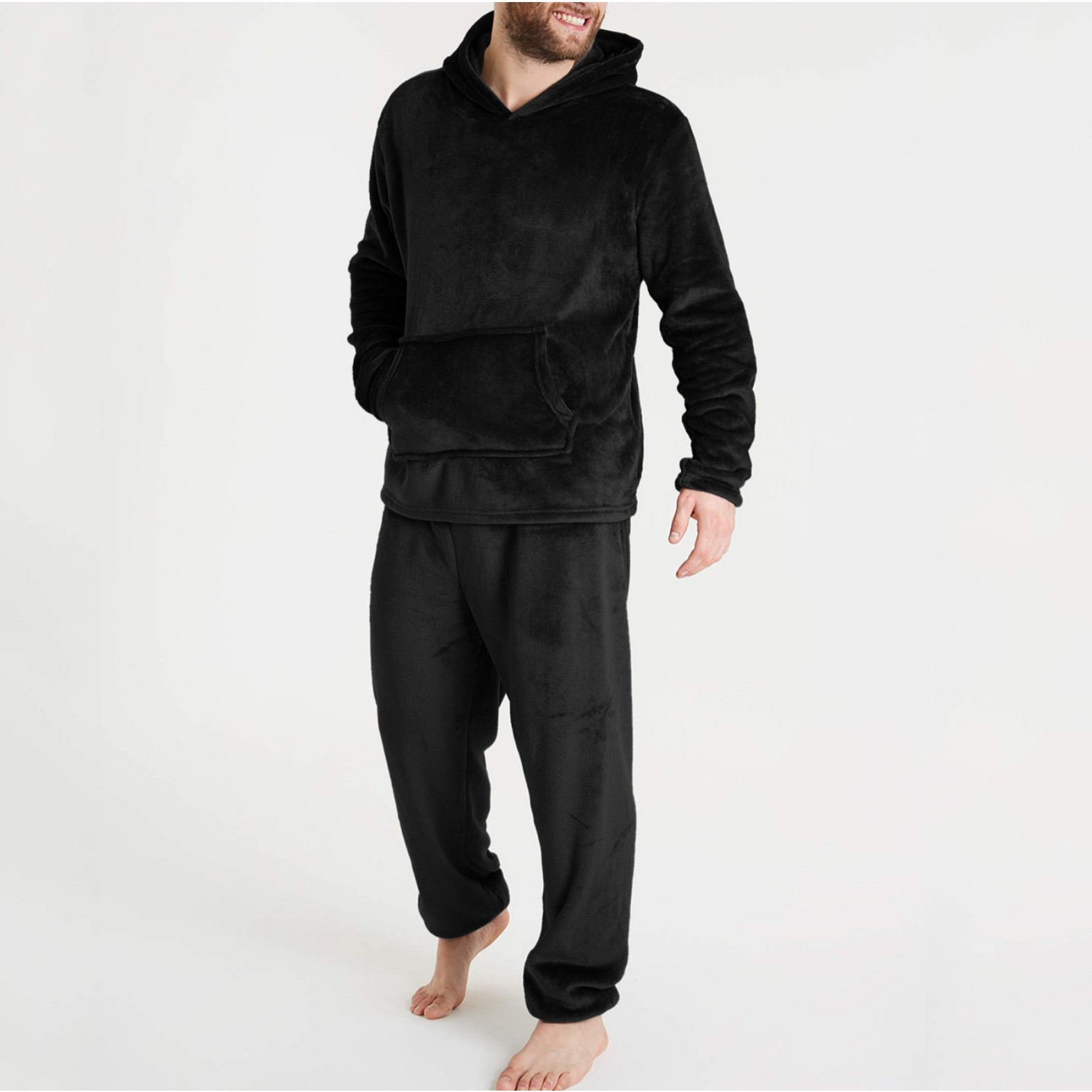 2024起爆金欧米秋冬金の国境を越えた対外貿易男性は、毛羽立ちを厚くしたズボンと帽子のパジャマの男性服を着ている