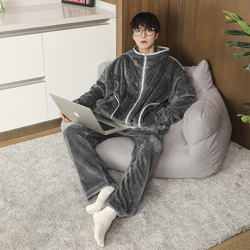 男性パジャマ冬にベルベットを厚くしたフランネル男性家庭服セットサンゴベルベット保温秋冬新ロット