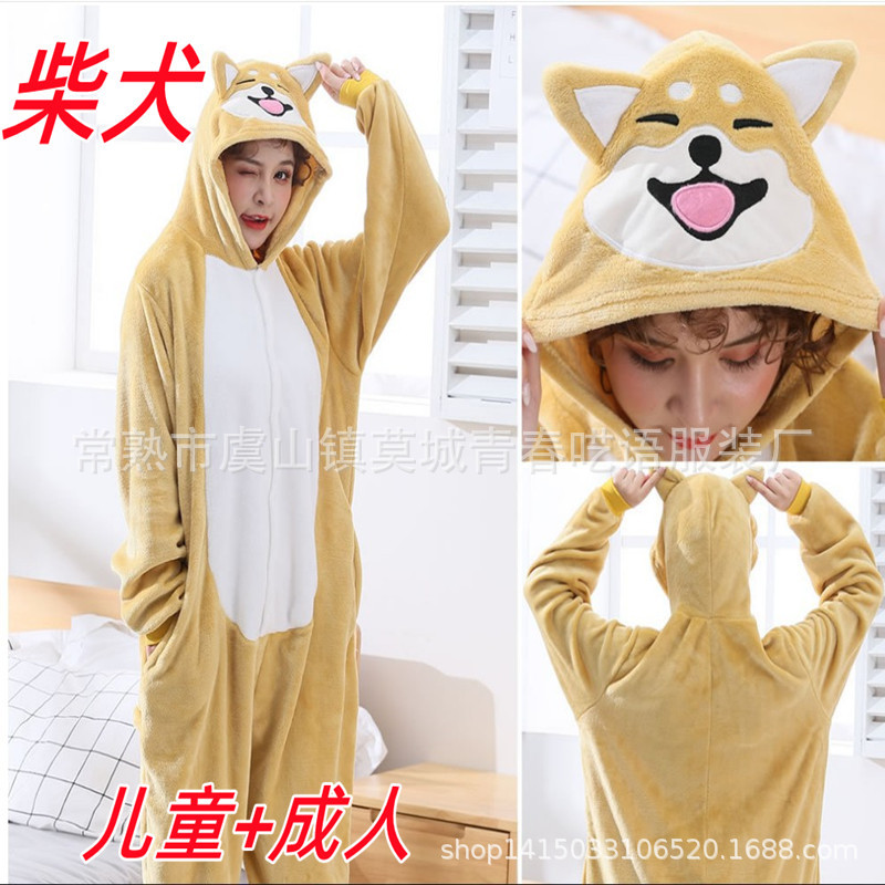 秋冬の子供のかわいい男女のフランネルの家の服の柴犬のコーキの漫画の動物の連体のパジャマの家の服