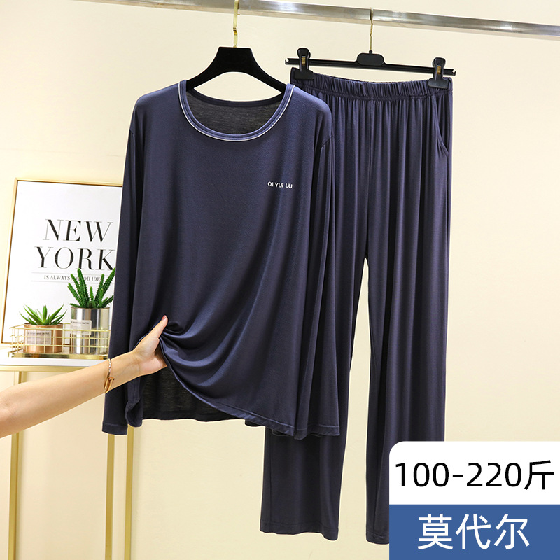 モーダルメンズパジャマ、パジャマ、春秋薄手Tシャツ、カジュアルパンツスーツ、大きいサイズ、中高年向け長袖ホーム服