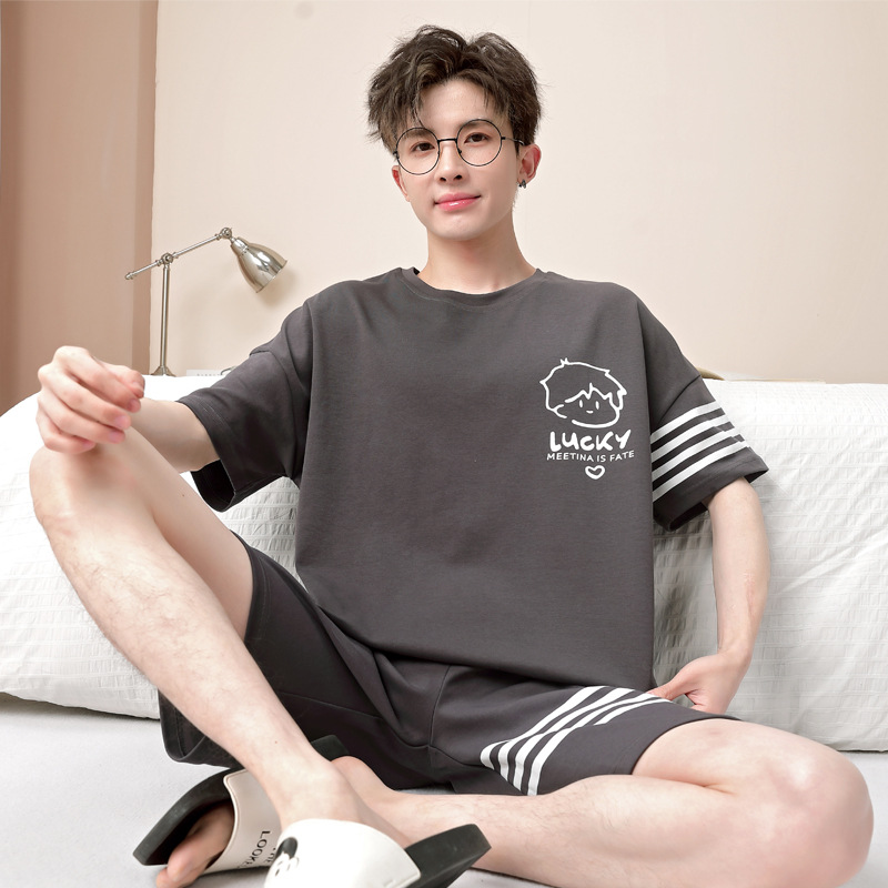 パジャマ男性夏半袖長ズボンシンプルな家庭服薄い綿質男性大サイズ青年学生カジュアルパジャマ