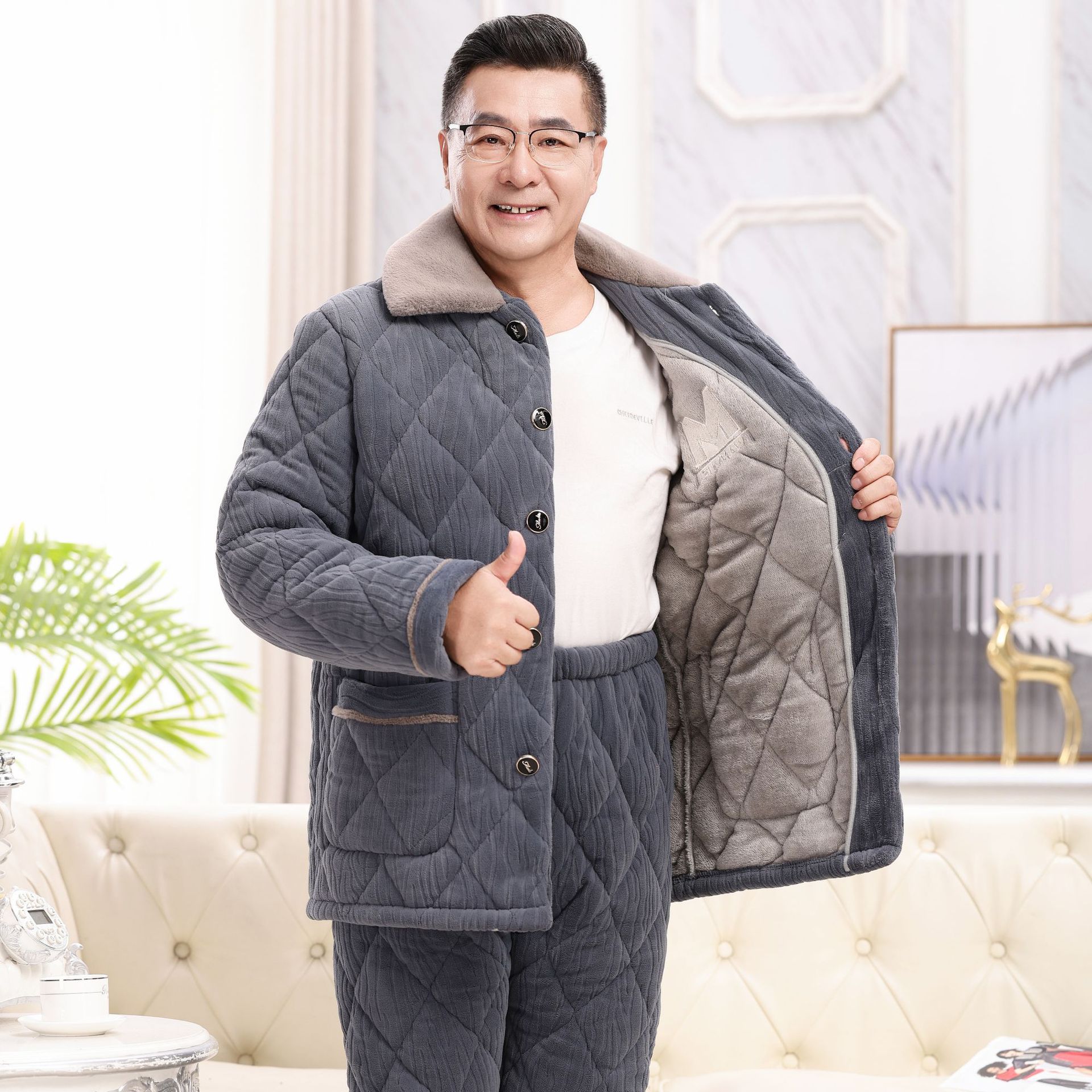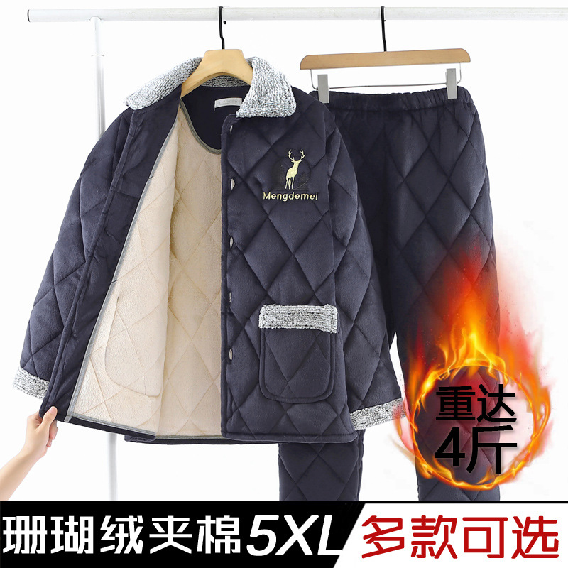 パジャマ冬の男性三階にベルベットを厚くして、綿を挟んで中年のお父さんの家の服の大きいサイズのスーツを保温します。