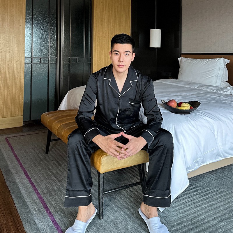 2024新型A家パジャマ男秋氷糸長袖長ズボン金銭豹ジャカード模造糸カップルホーム服
