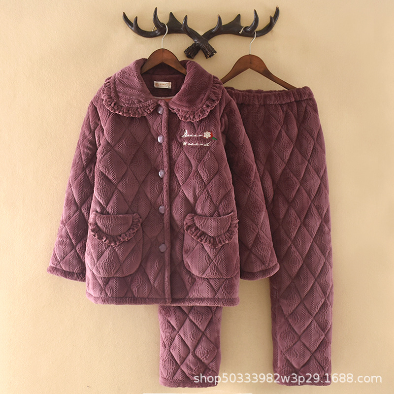 秋冬の新型ジャカードの綿のパジャマの女性のフランネルの厚い長袖の家庭服のカップルのタイプはスーツを着ます。