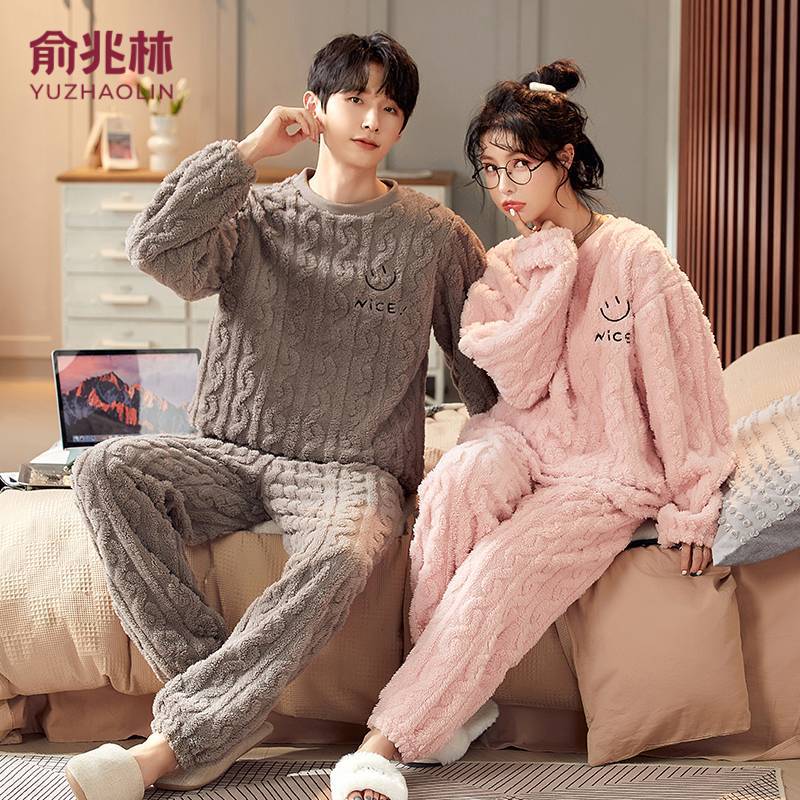 秋冬の新品男性フランネル長袖長ズボンセット女性用サンゴの保温パジャマ