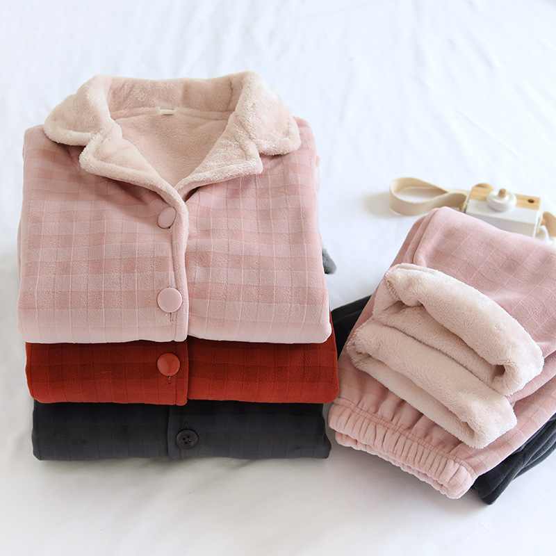 フランネルパジャマカップル男性秋冬三階保温サンゴベルベット家庭服女性セット