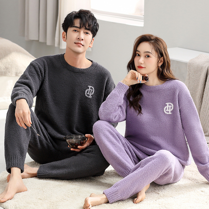 2024年徳毛カップルパジャマ女性薄毛保温秋冬の新型厚手長袖男性家庭服セット