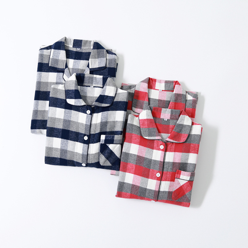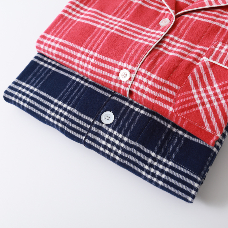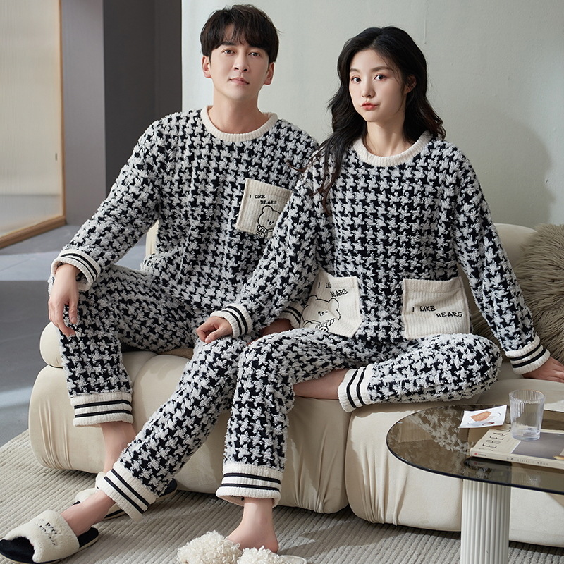 秋冬メンズコットン厚手ベルベットパジャマレディースシンプルチェック長袖セットカップル日系ホームウェア
