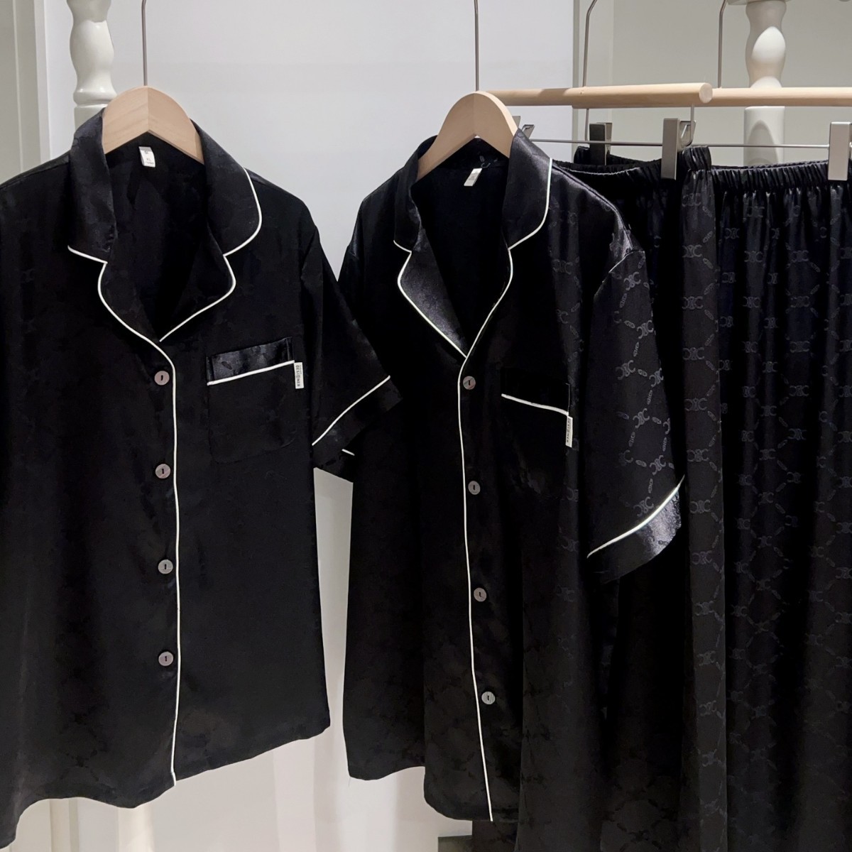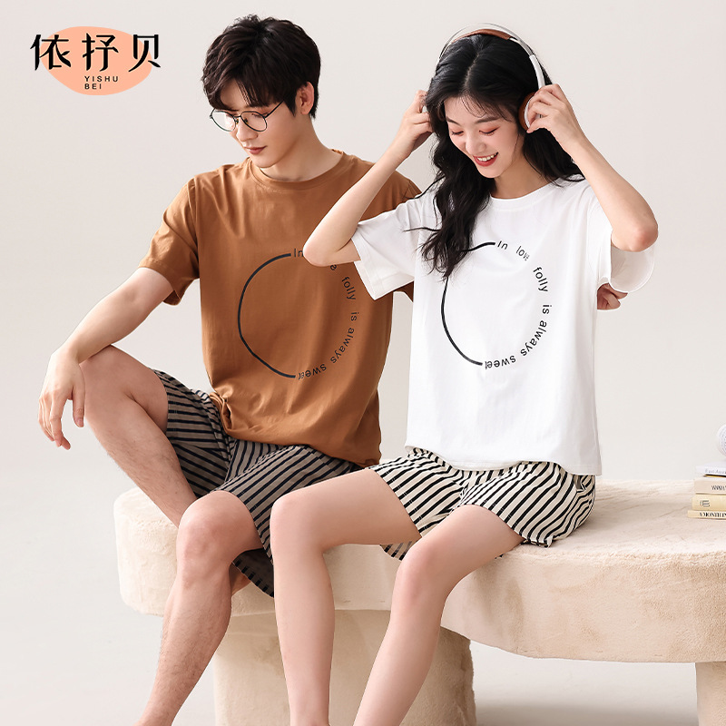 2024年新品カップル夏半袖半ズボンパジャマレディース高級感夏スタイルスーツアイス男性ホームウェア