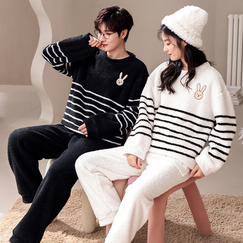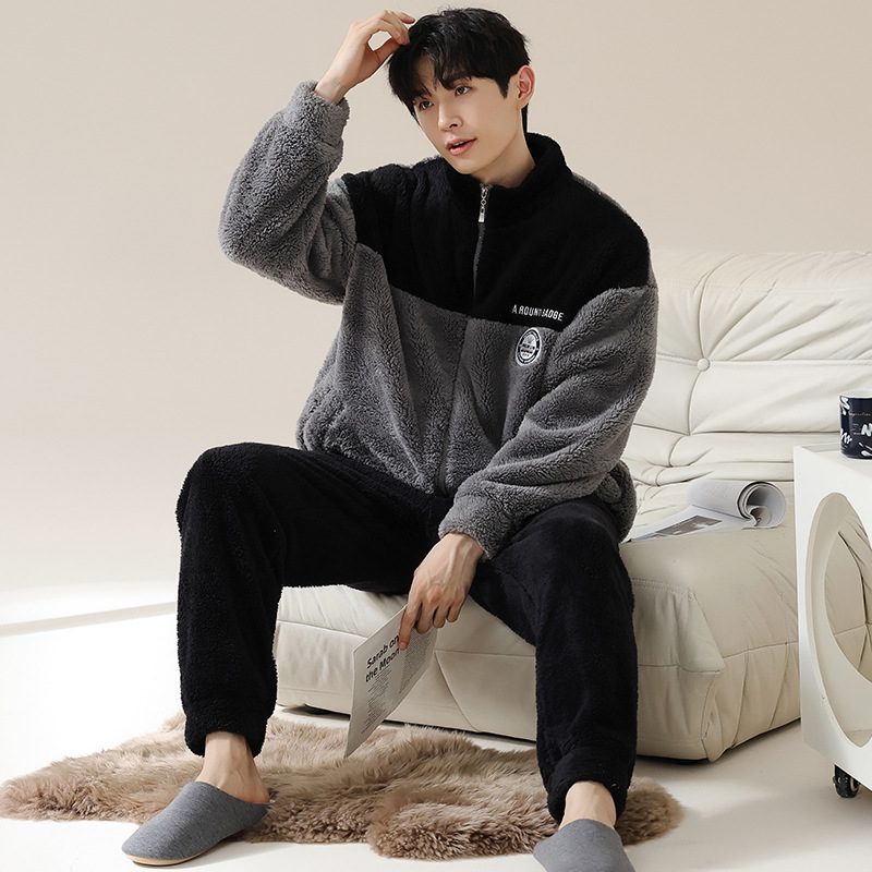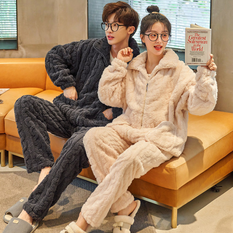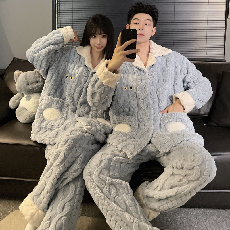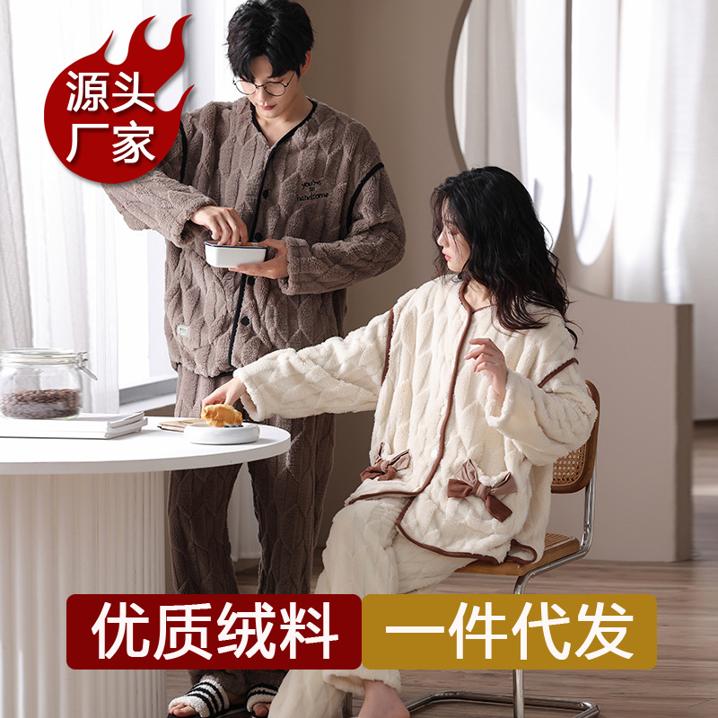 秋冬新作カップルパジャマ長袖コーラルベルベット暖かい長毛ベルベットメンズカジュアルホームウェアセット