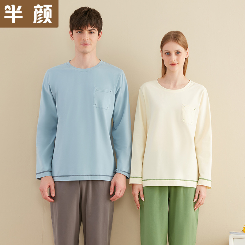 半顔ブランドの家庭服秋冬カップル男性厚舒毛綿磨毛丸襟カバーカジュアル長袖ズボン
