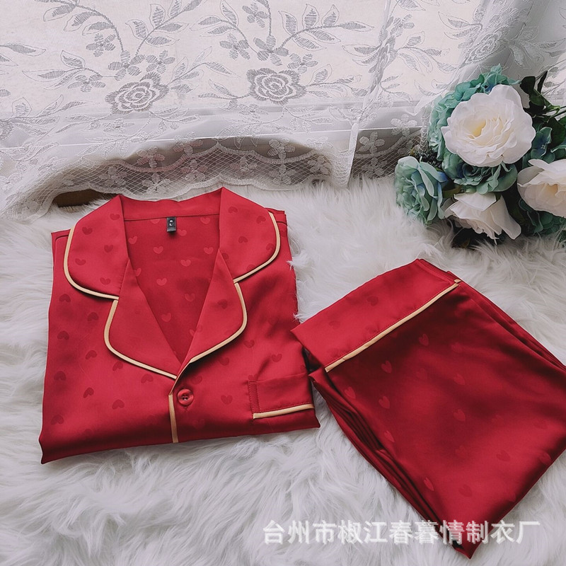 新型本命年赤い氷糸パジャマ女性新婦新婚カップル長袖愛セット新郎ルームウェア男性