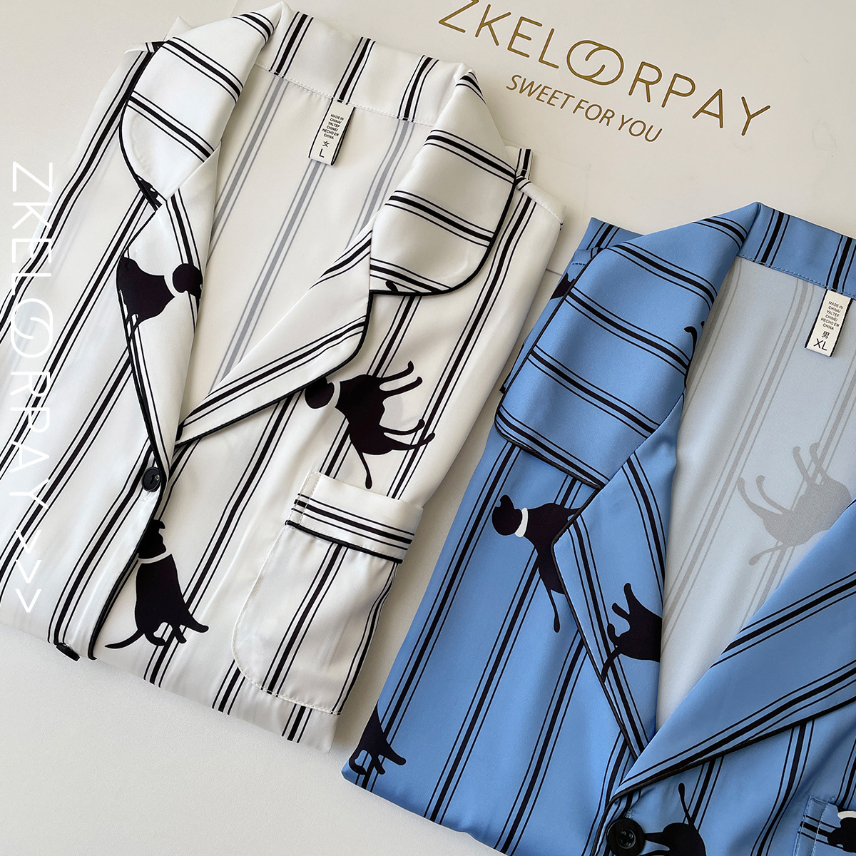 春夏の新型カップルの氷のパジャマの女性のストライプの漫画の家庭服の長袖のズボンの男性の韓国版の家庭服のカバー