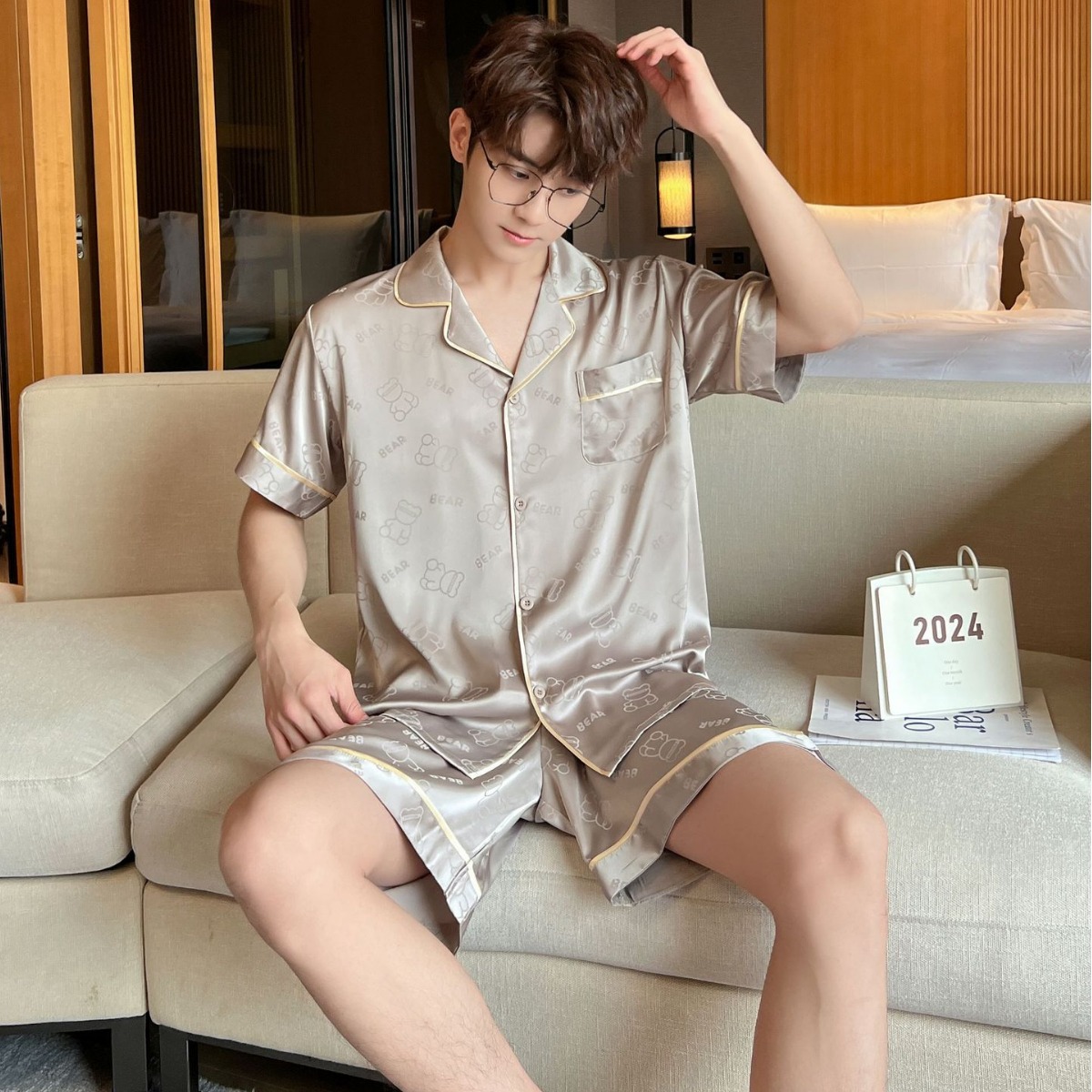 パジャマ男パジャマ夏氷糸半袖半ズボン薄いモデルの新型ベアー春夏シルク部屋服セットN36