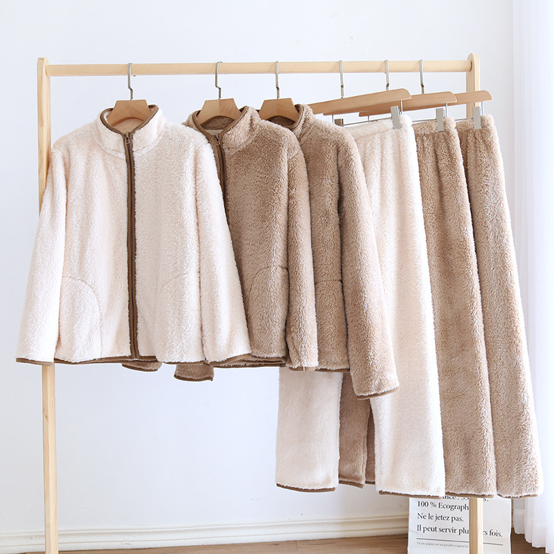 カップル向けアイランドベルベットパジャマ 秋冬 レディース無地ストレッチコーラルベルベットセット 大きいサイズ メンズフランネルルームウェア
