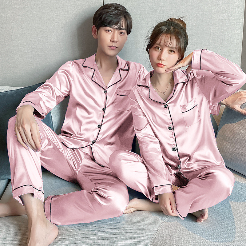 カップルパジャマ春と秋 2022 メンズ新アイスシルク長袖ズボンスーツ薄い女性のホームウェア卸売