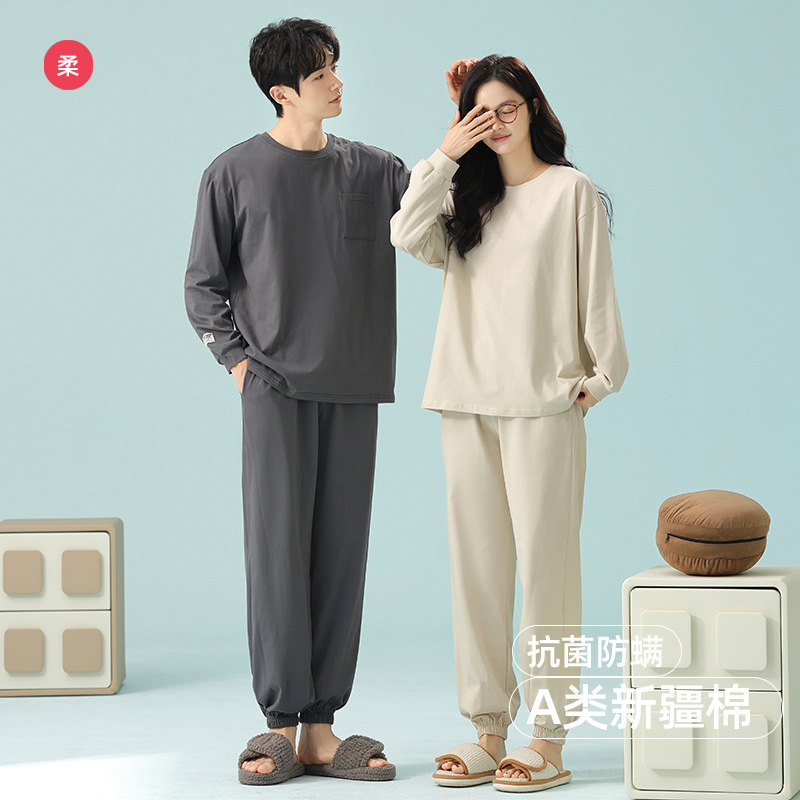 【抗菌・防ダニ】カップルパジャマレディース純綿春・秋純色メンズホームウェアスポーツスーツ高級感